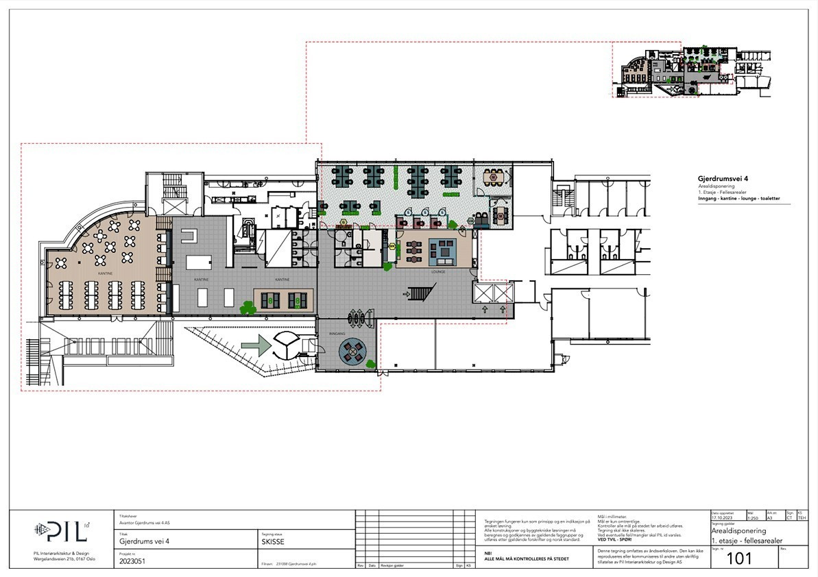 I 1. etg er det et areal på 326 kvm BTA som kan tilpasses en ny bruker, med inngangsparti fra den flotte sosiale sonen i 1. etg.